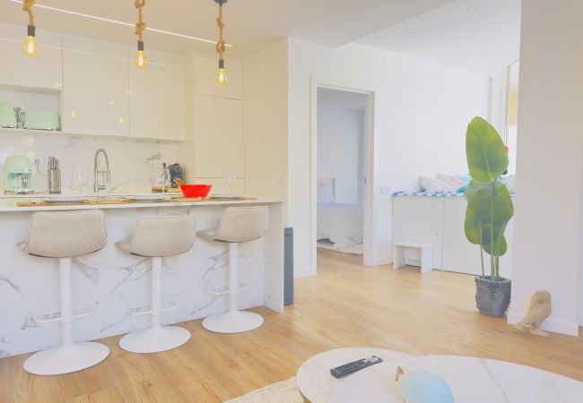 O apartamento está localizado em um edifcio com dois elevadores no 6º piso, por isso a vista ser deslumbrante, tem 1 quarto e capacidade para 4 pessoas. Alojamento de 45 m². Dispõe de máquina de lavar roupa, ferro de engomar, acesso internet (wifi), secador de cabelo, 2 Televisores um deles no quarto A kitchenette, de vitrocerâmica, está equipada com frigorífico, microondas, forno, congelador, máquina de lavar louça, louça/talheres, utensílios/cozinha, cafeteira, torradeira e jarro eléctrico.