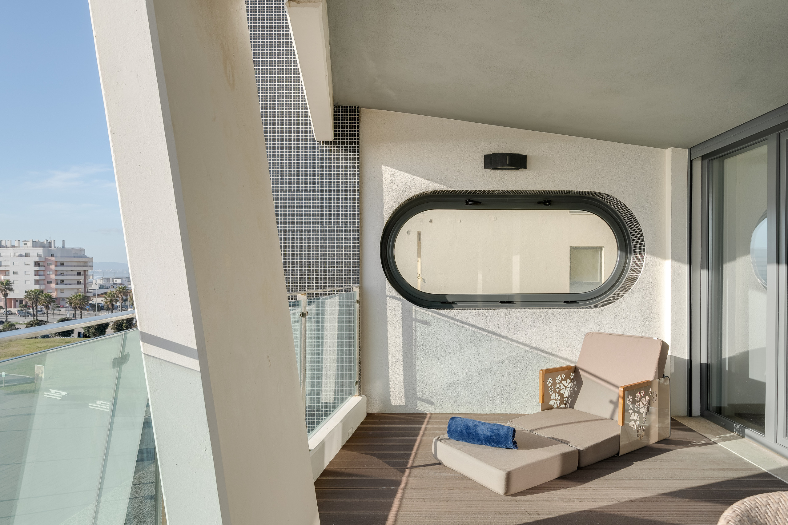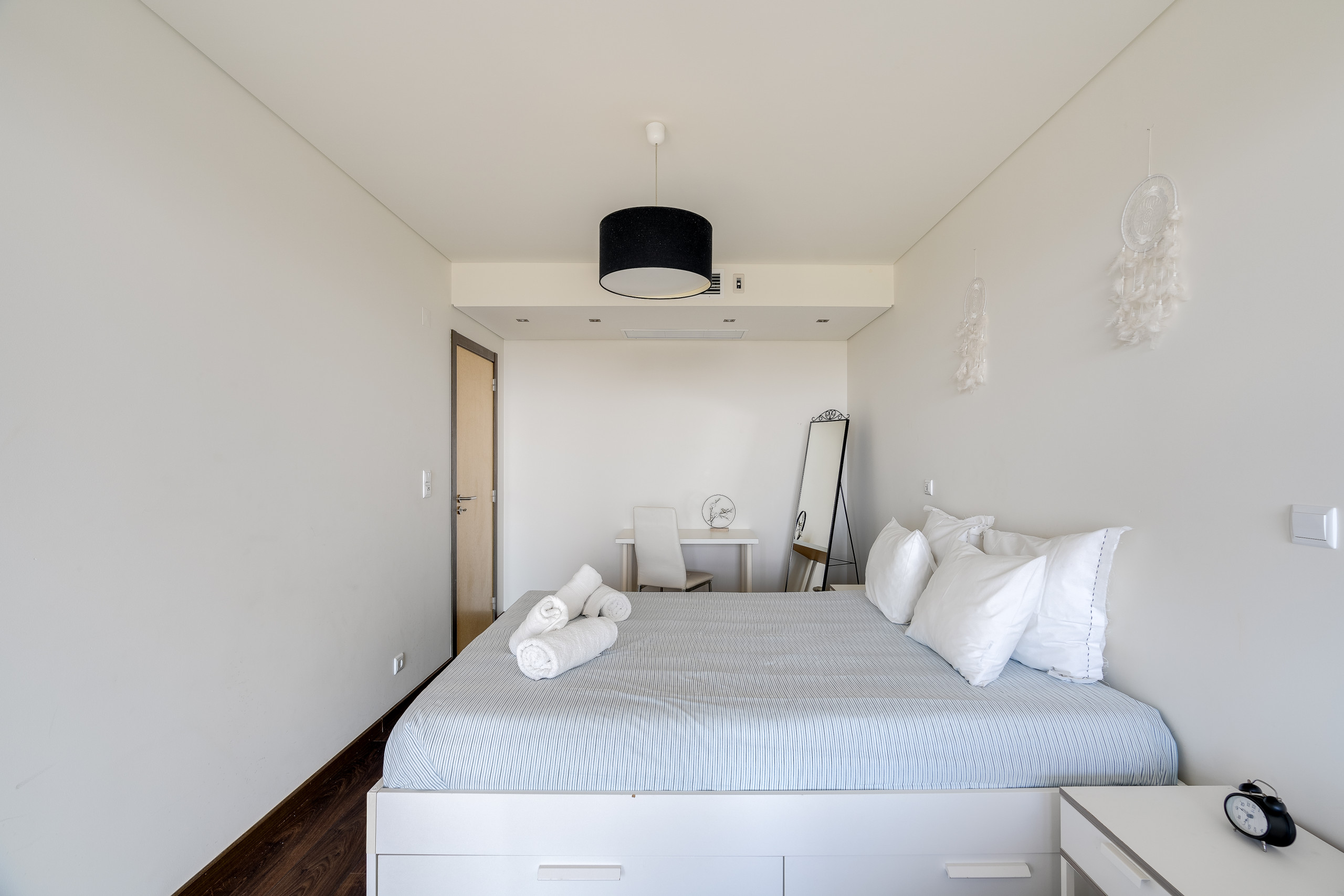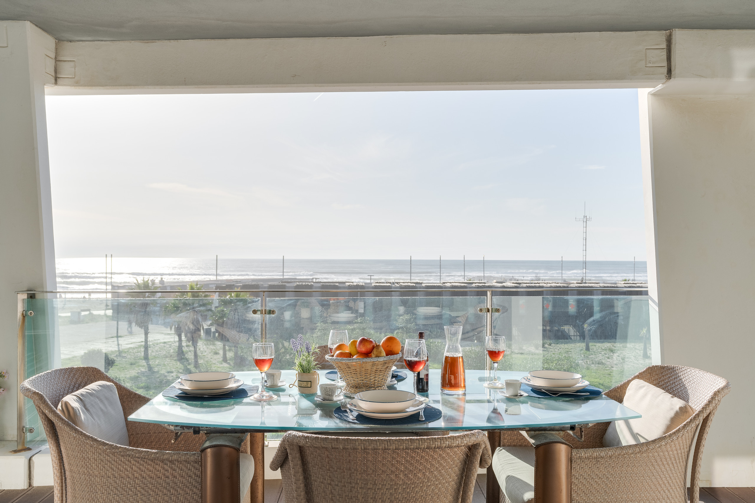Está situado a 2 minutos a pé da praia, da varanda podes observar como estão as condições do mar, ambos os quartos tal como a sala tem vista de mar, uma varanda enorme onde pode fazer as suas refeições ou apenas relaxar e apanhar um sol no conforto que esta reservado pa si.