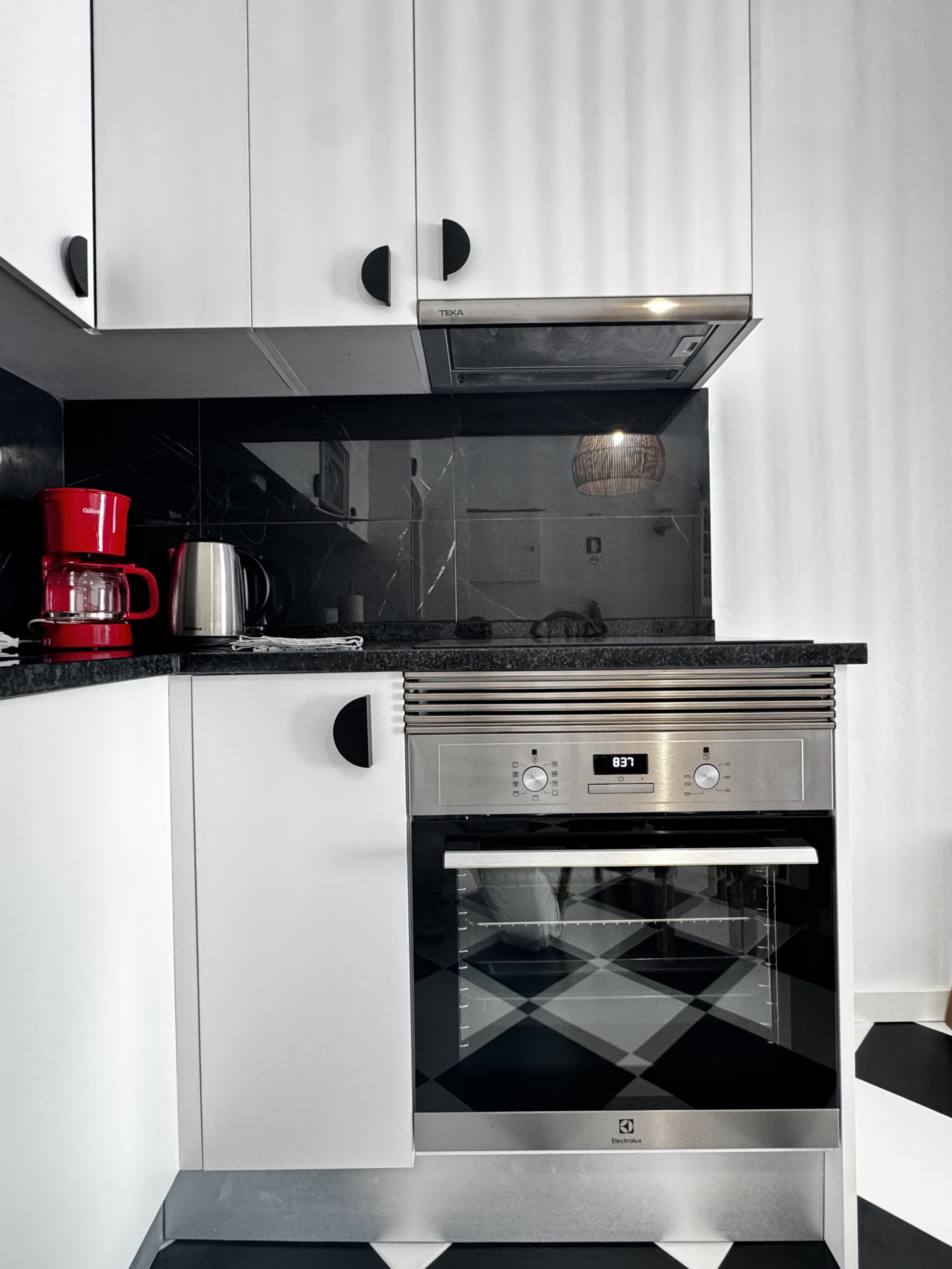 In the hotplate of glass ceramics open plan kitchen, refrigerator, microwave, freezer, dishes/cutlery, kitchen utensils, coffee machine, toaster and kettle are provided.