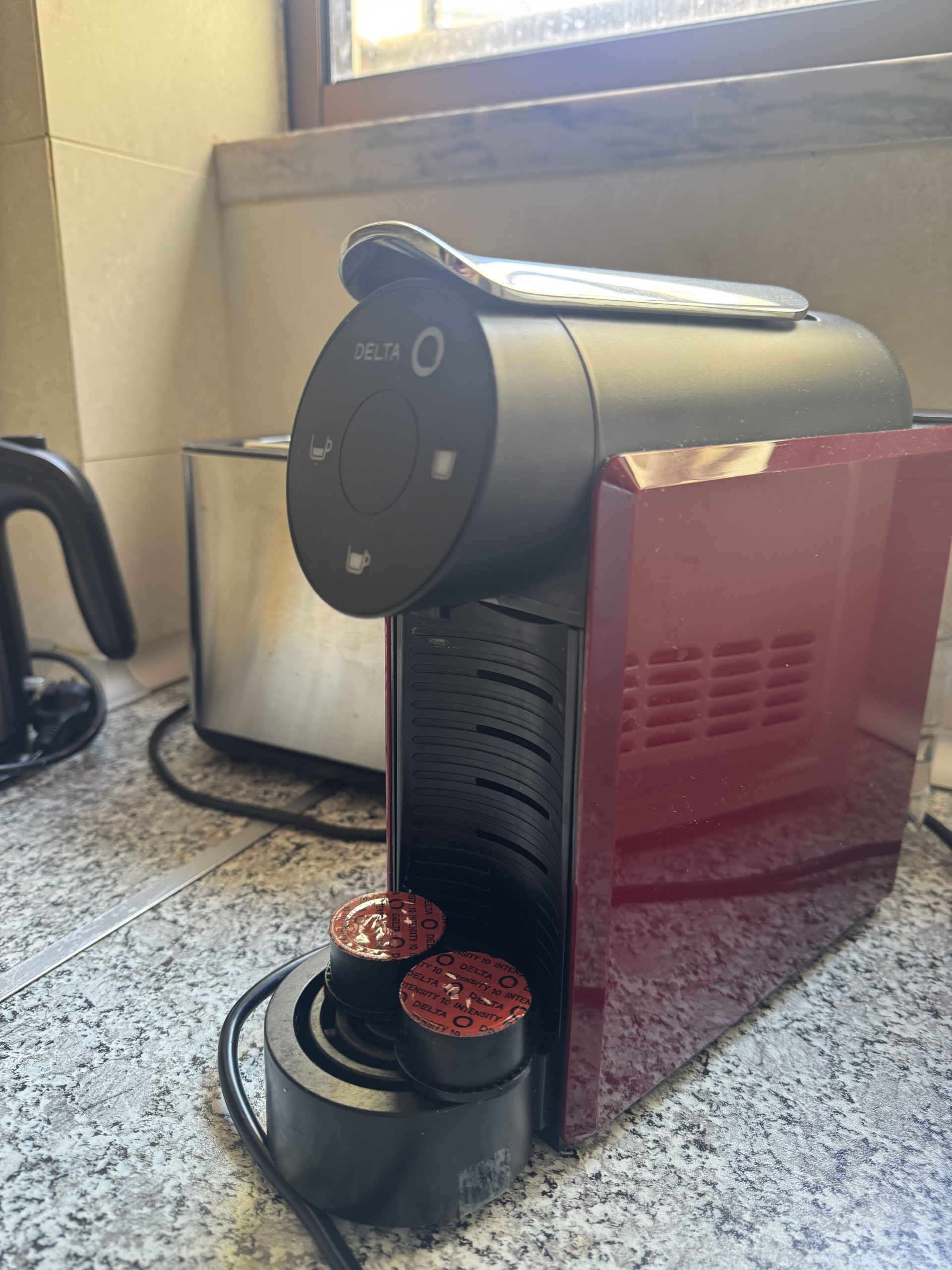 cafetière, grille-pain et bouilloire électrique.